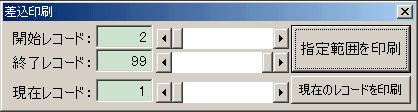 | 指定範囲を印刷: | 「開始レコード」から「終了レコード」までを連続して差込印刷します。 |