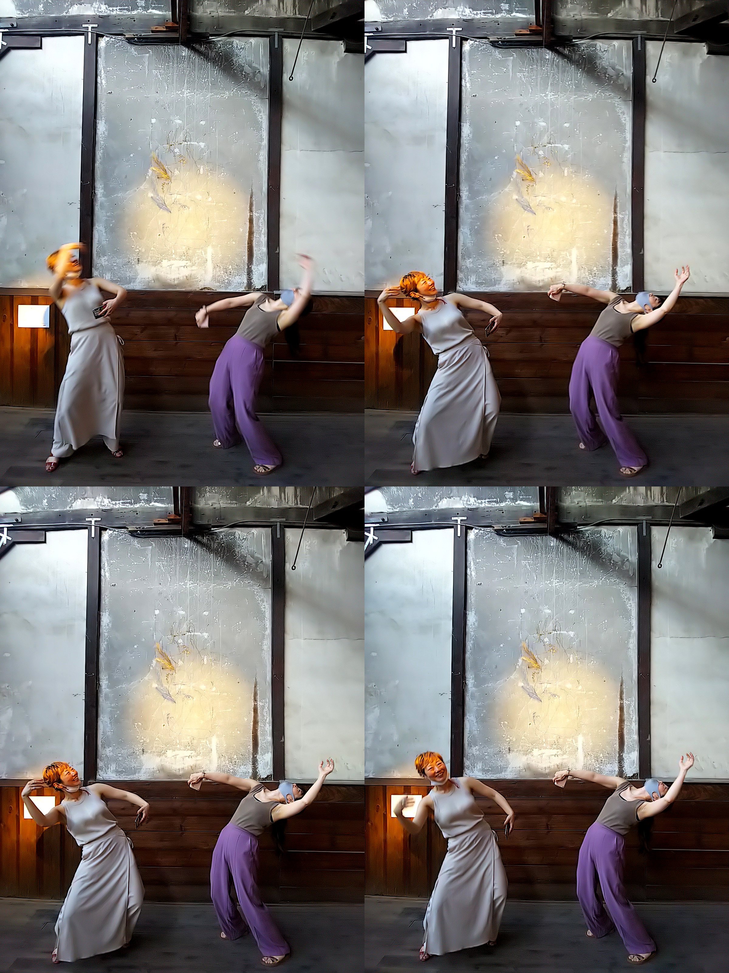 ▲ワイヤーアートの前でケン玉する母娘。子供は照明サポート。