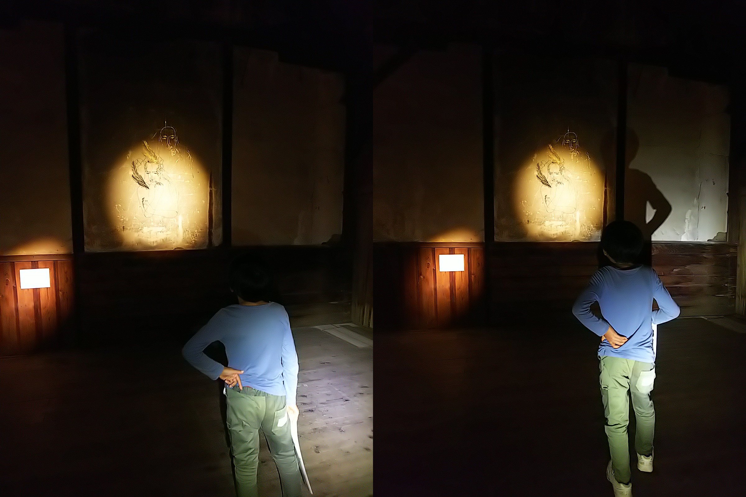 ▲ハンディライトを照らす女子