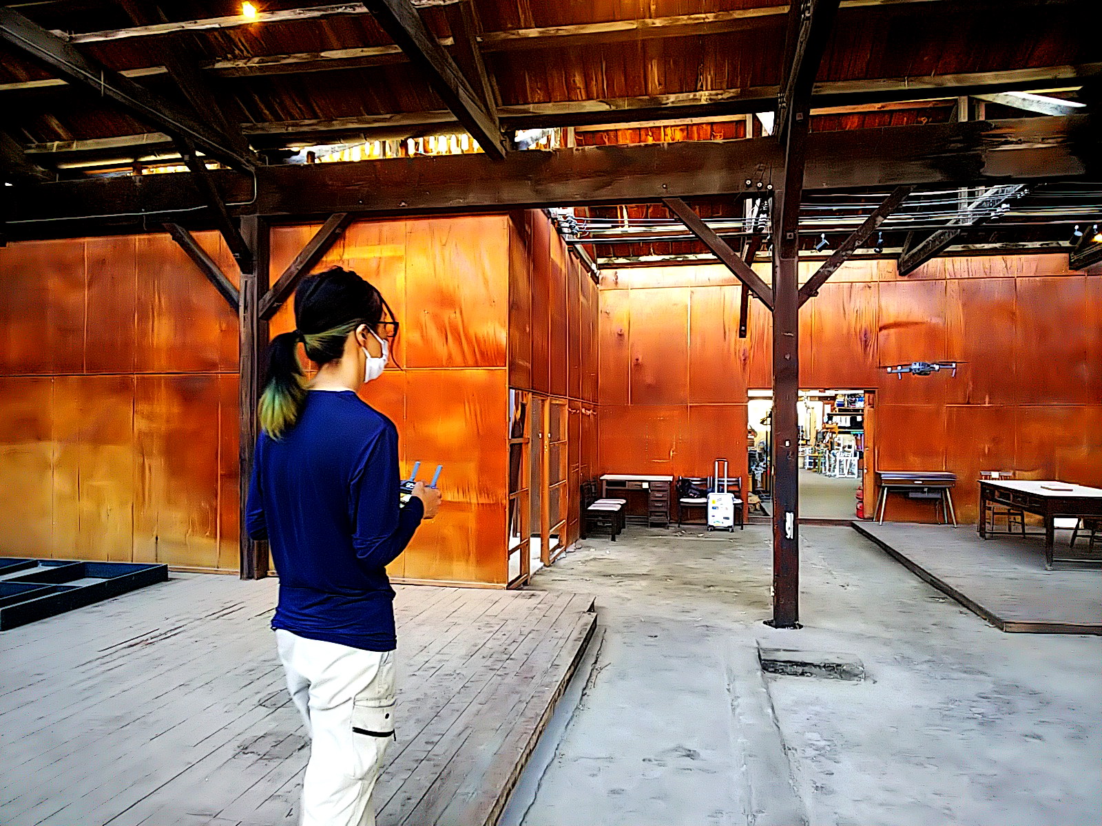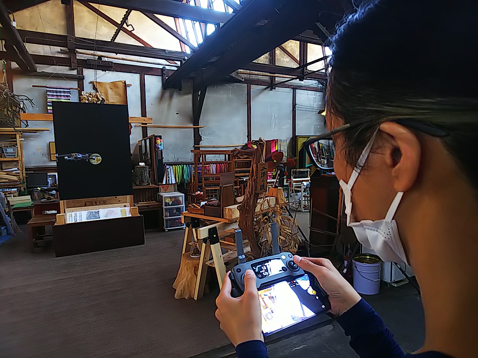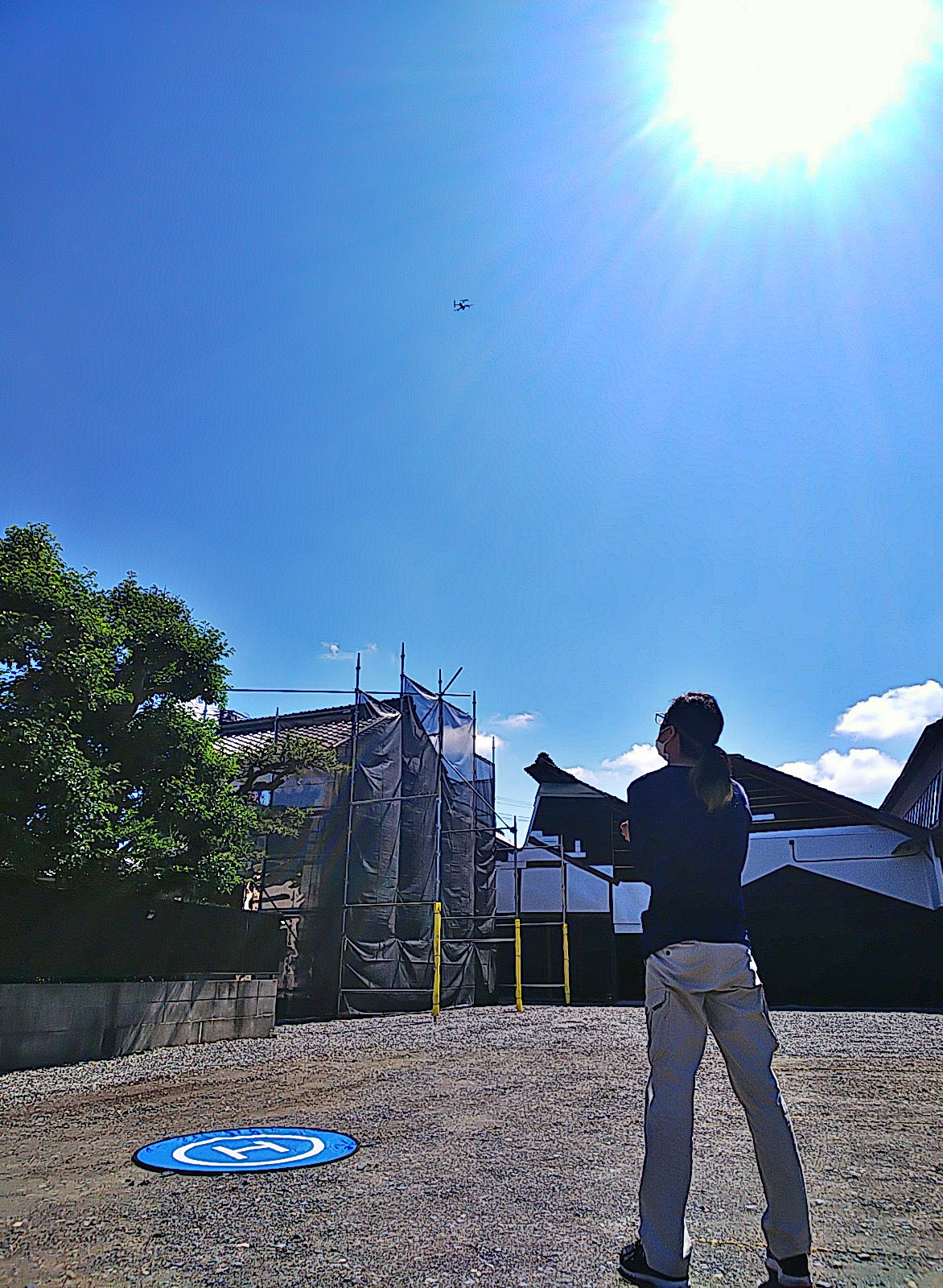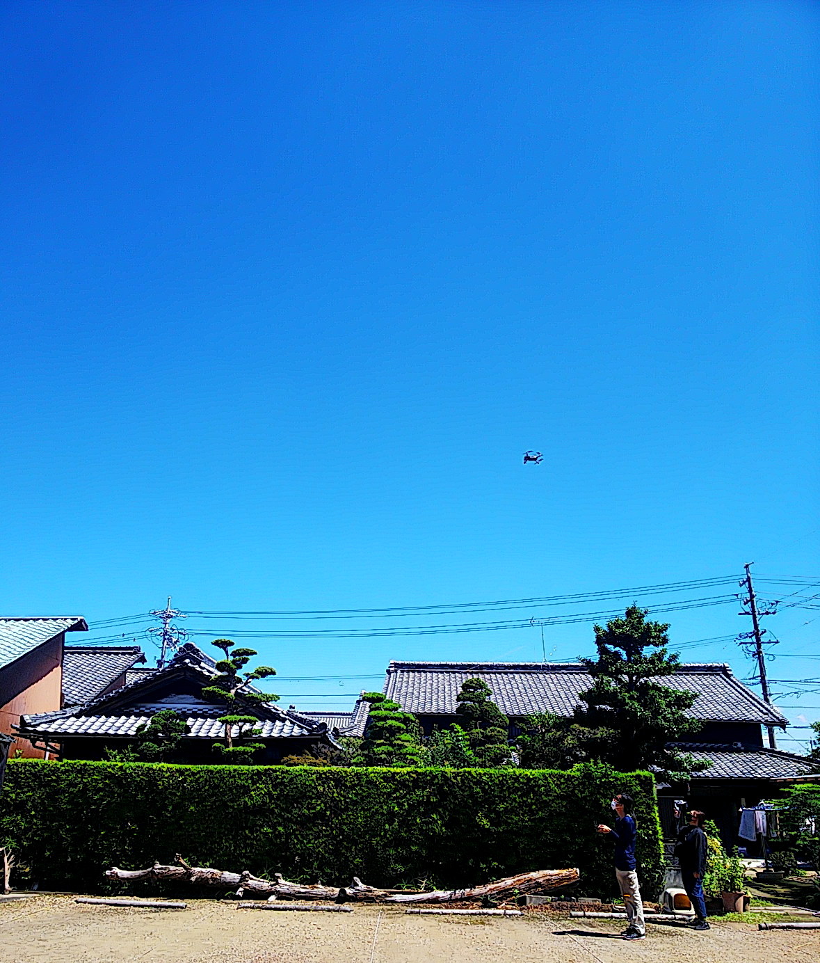 ドローン撮影の現場に立ち合わせていただき、大変貴重な体験となりました。ドローンの羽音は意外と耳障りなく、決して騒音という不快感を覚えるものではありませんでした。むしろ個人的には、ドローンのホバリングを目の当たりにした時、“胸キュン”でしたね。