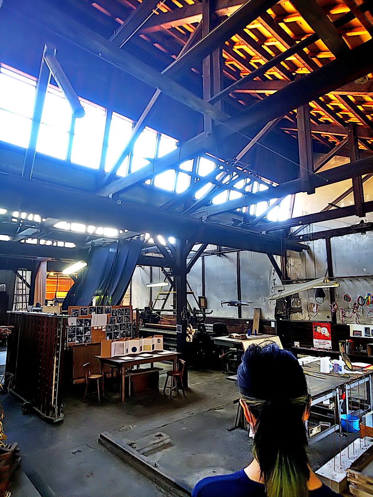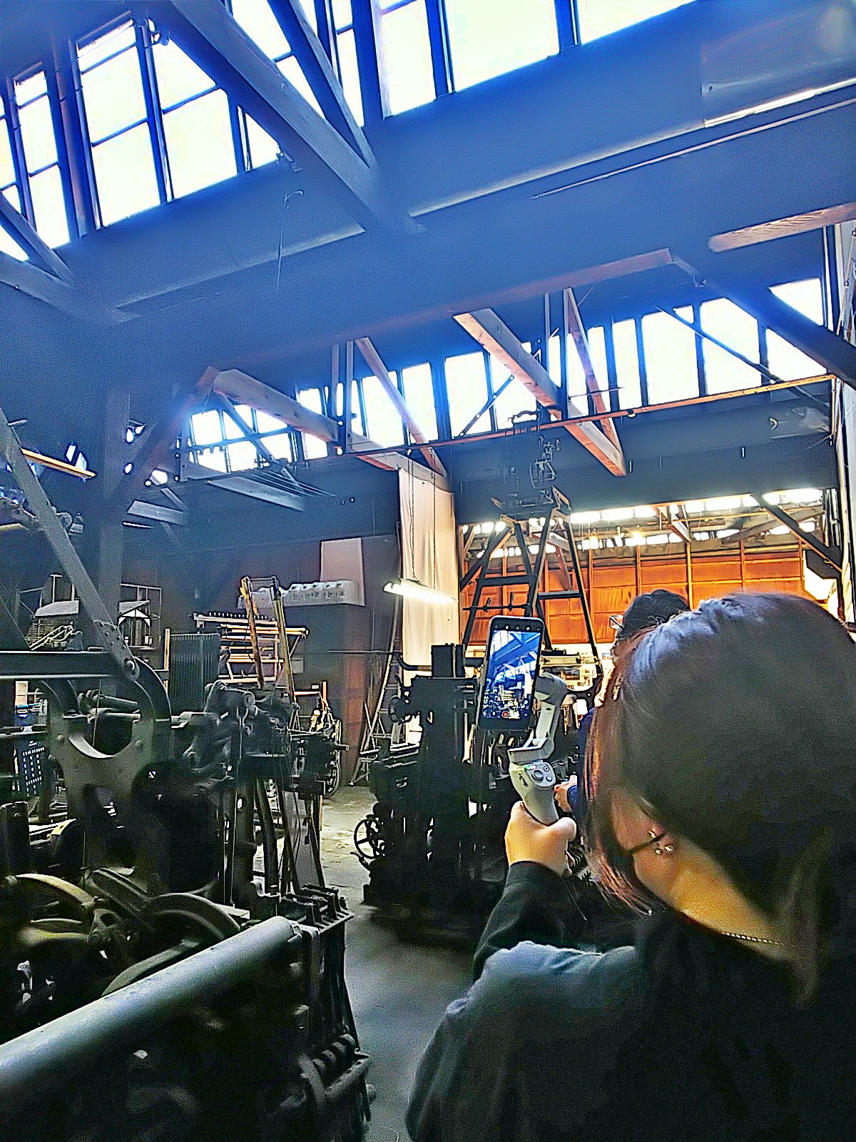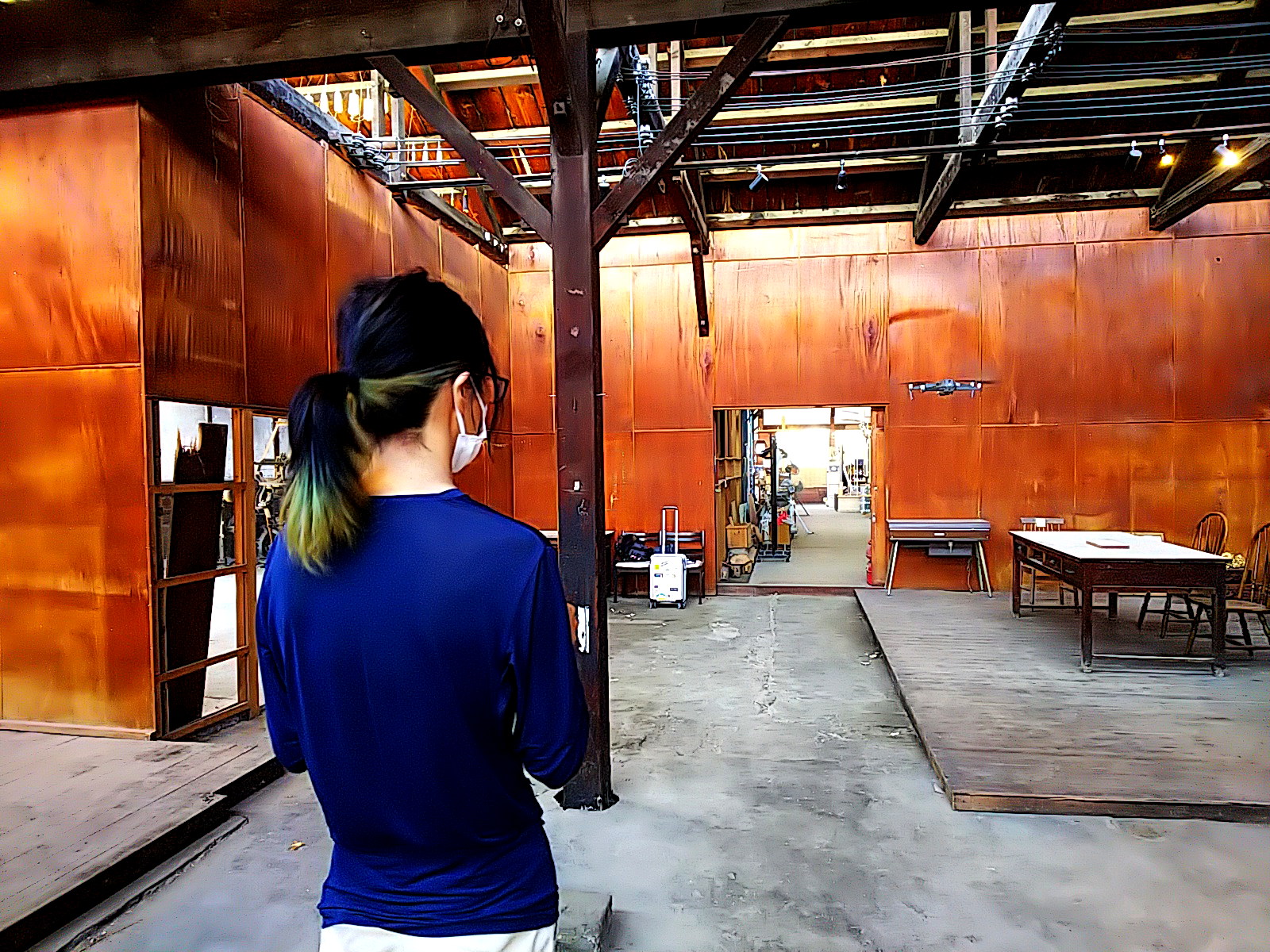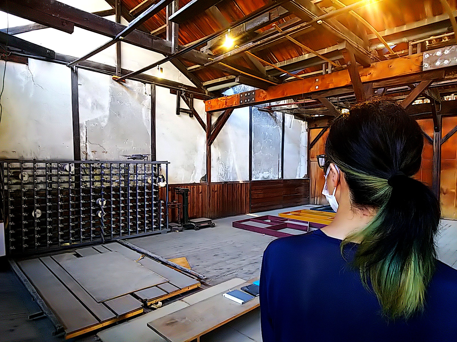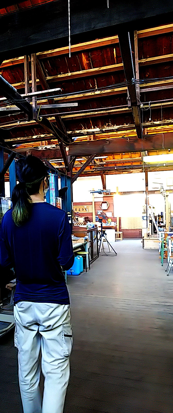 ■ノコギリヤネを俯瞰した後、開かれた西扉から工場内へと進入します。