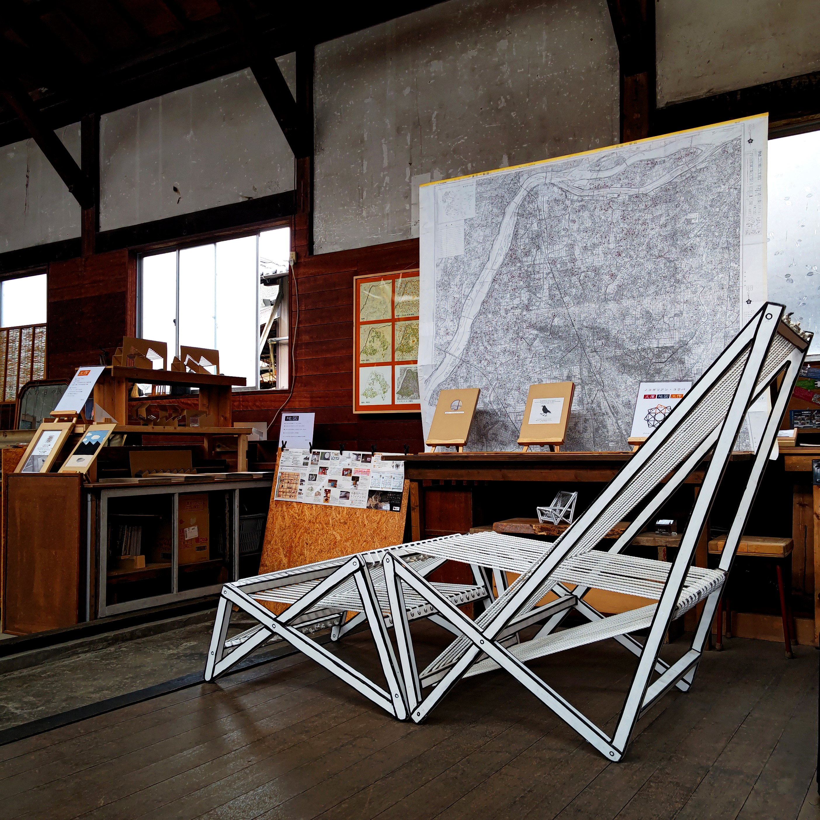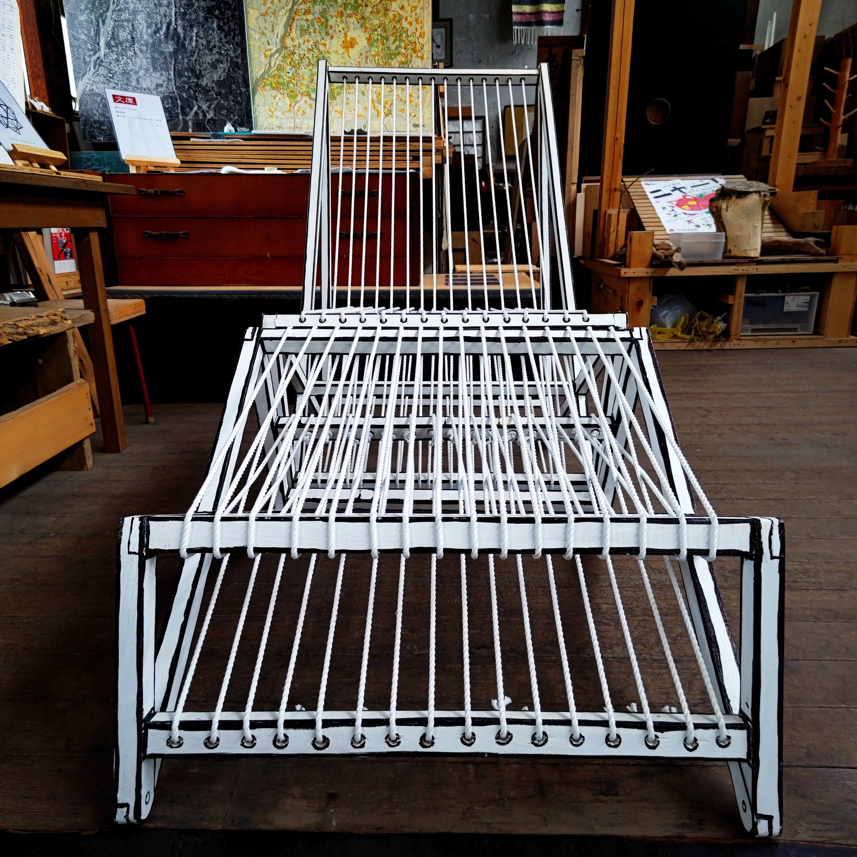 地元一宮で有名な織機をモチーフに制作しました。 1本では座れなかった紐が重なり合い、すれ違うことにより快適に座ることができる姿はどこか現代社会に通じるものがあるのではないでしょうか。