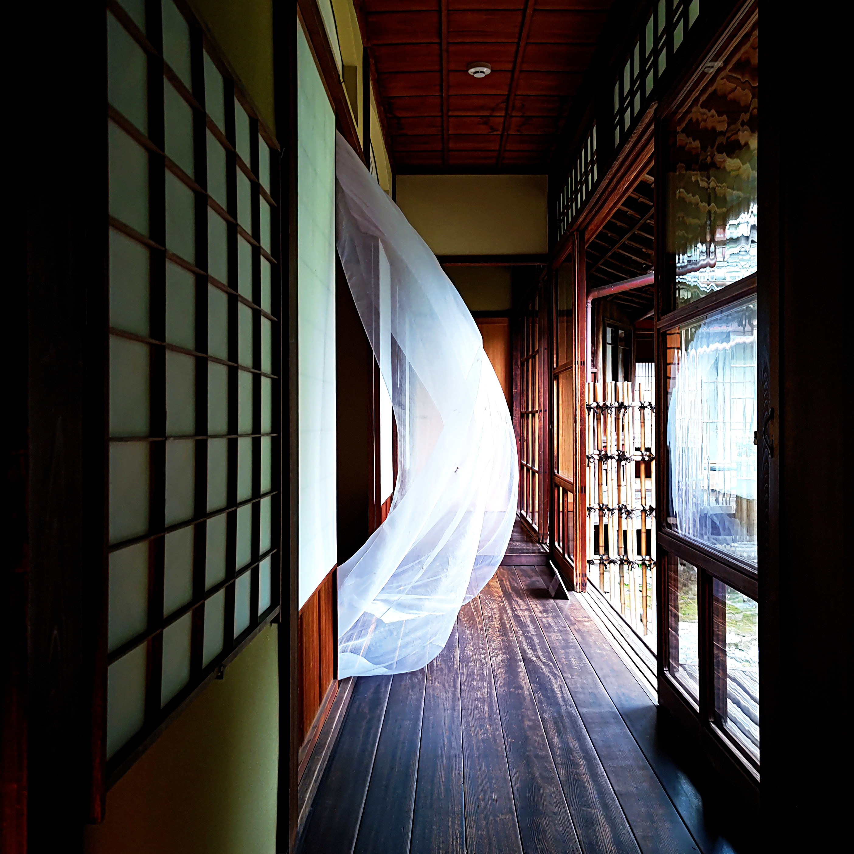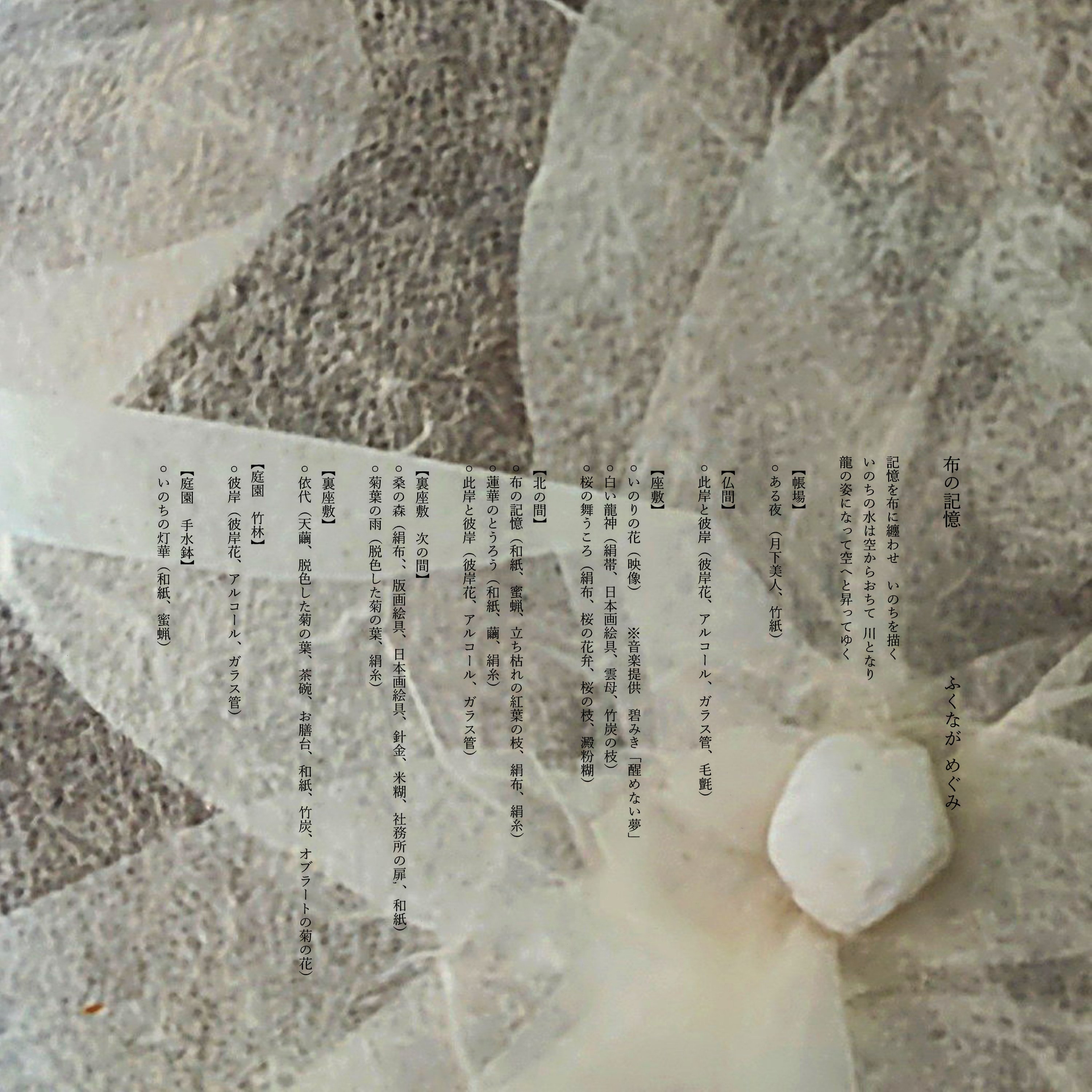 人の記憶を布に纏わせ いのちを描く いのちの水は空からおちて 川となり 龍の姿になって 空へと昇っていく