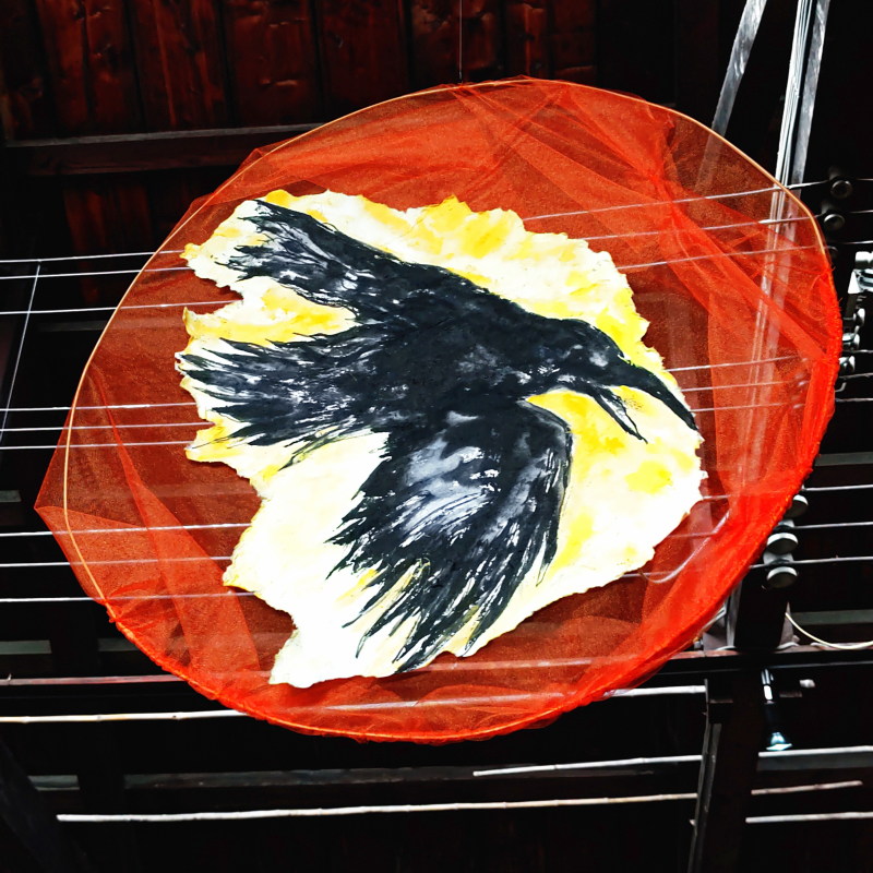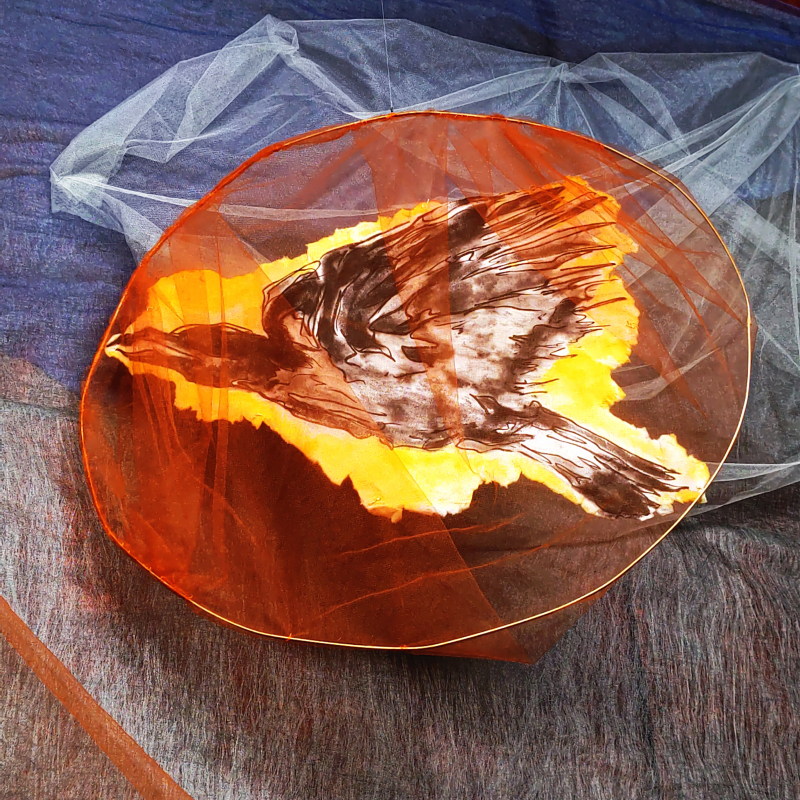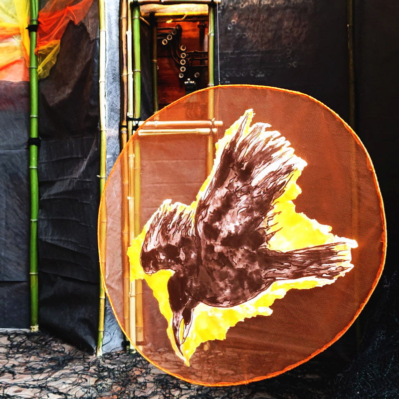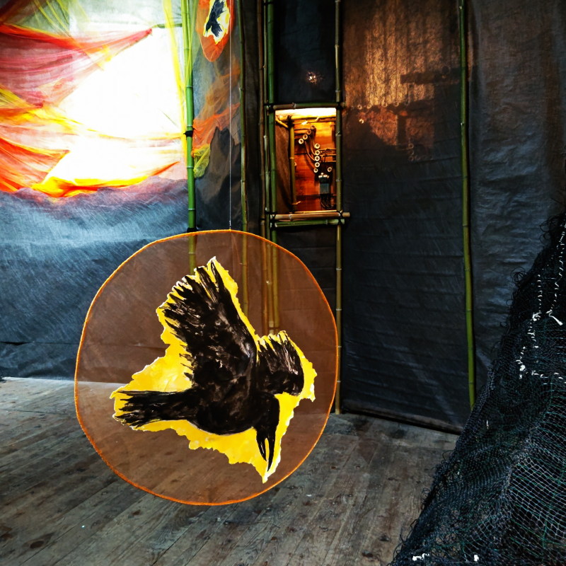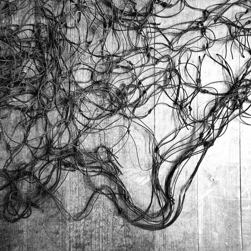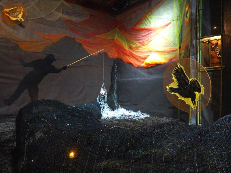 作図された自身の影が、幼い頃の自分の写真を釣り上げるという構図。