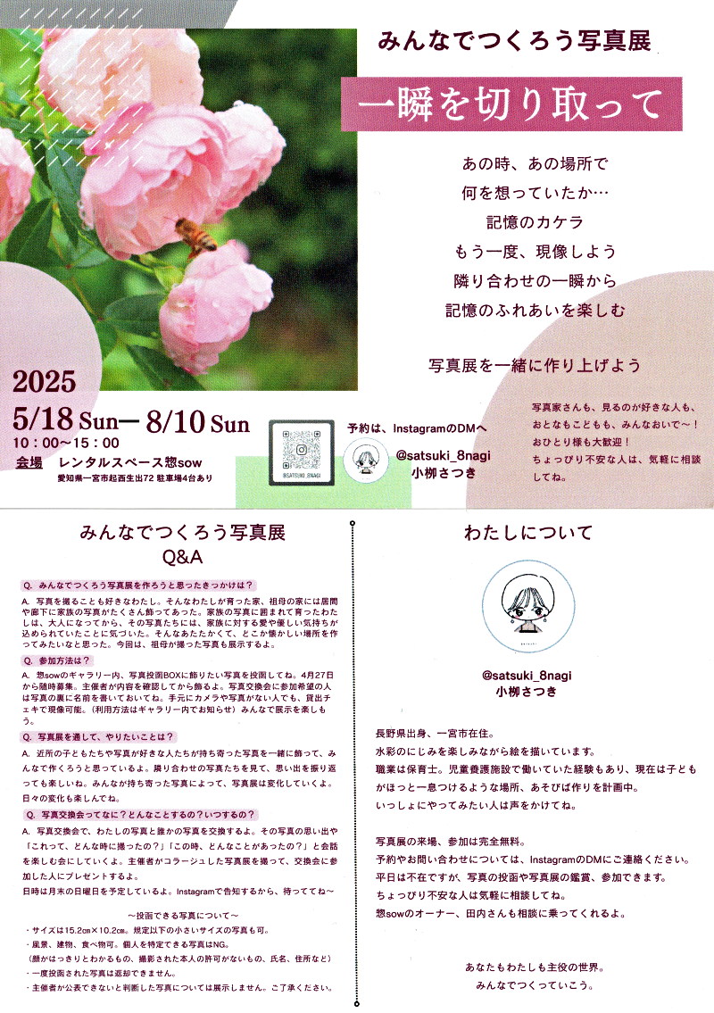 ここまで辿り着けたのも、わたしのやりたいことの言語化を手伝ってくれた人、見守り役の人、写真投函ポストを快く置かせてくださったお店、場所を提供してくださった惣sowさんのおかげです☺️