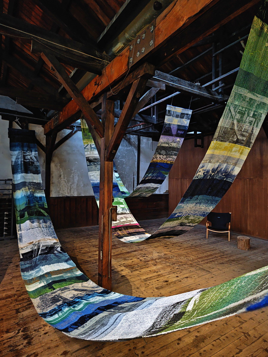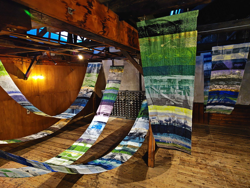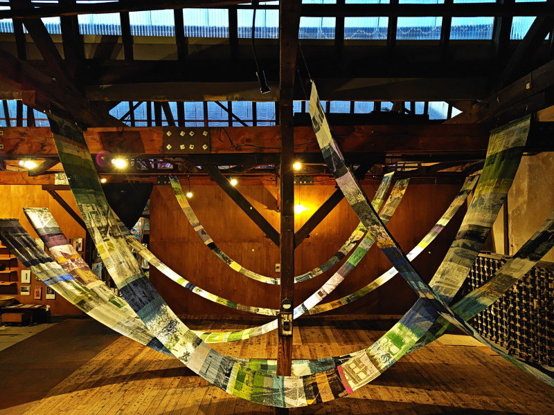 この会場(のこぎりニ)での展示のために作品は制作されました。 一年を費やしたそうです。インストールは、一日。 “場”との対話の中で生まれてくるもの。